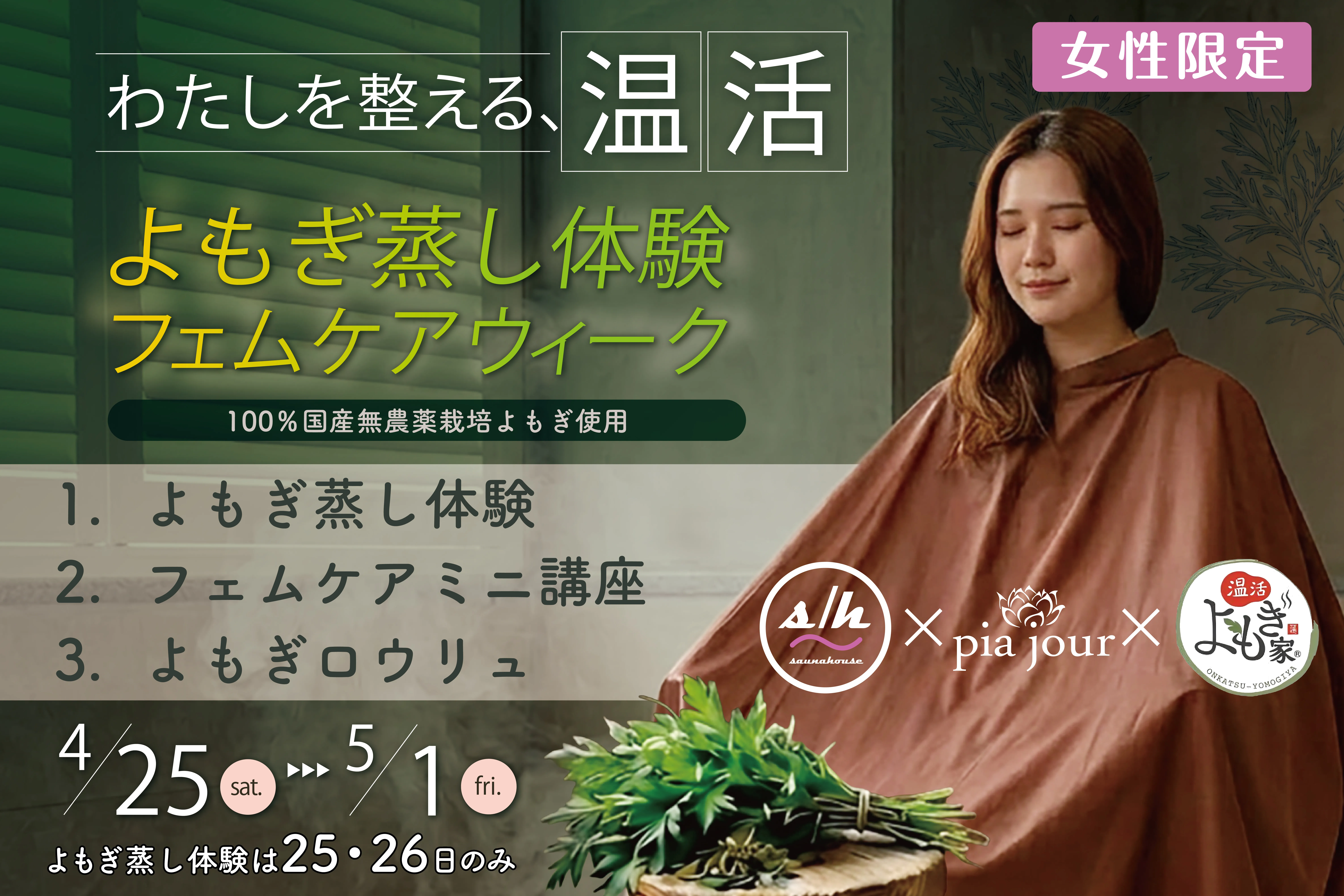 《4月25・26日限定!よもぎ蒸し体験&フェムケア講座初開催!》